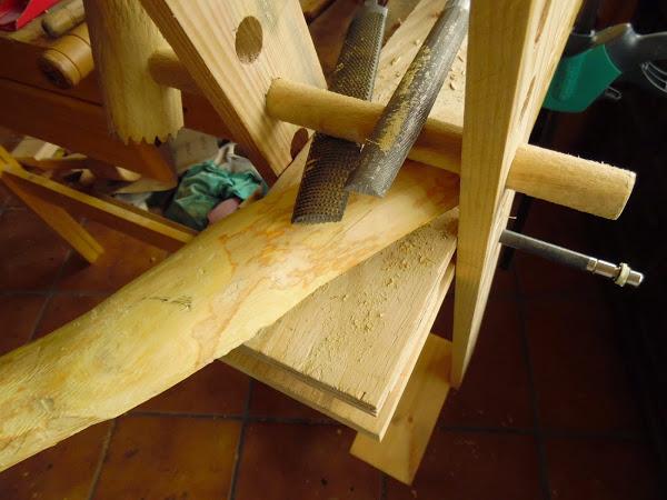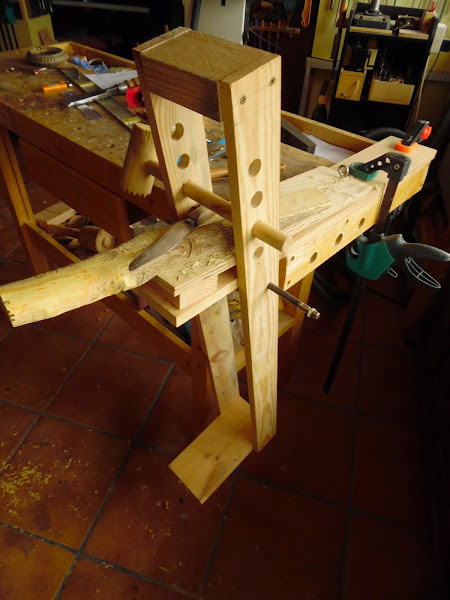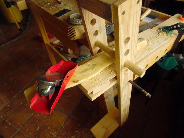 Es una especie de "shaving horse" que creo que en español sería algo así como caballo de afilado pero adaptado para la mesa de trabajo.
