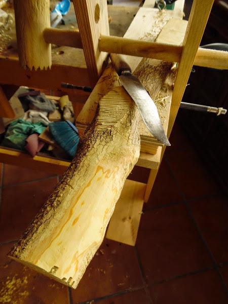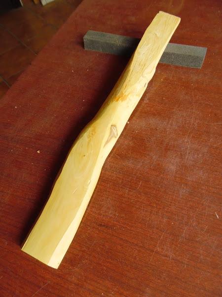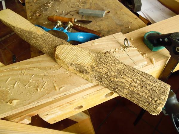 Ahora alisaré la otra parte. Le paso un cepillo pero, en lugar de hacer pasadas a lo largo de la rama lo haré dando varias en diagonal porque así se nos enganchará menos la cuchilla en el caso de encontrarnos con una veta que cambie de dirección.
