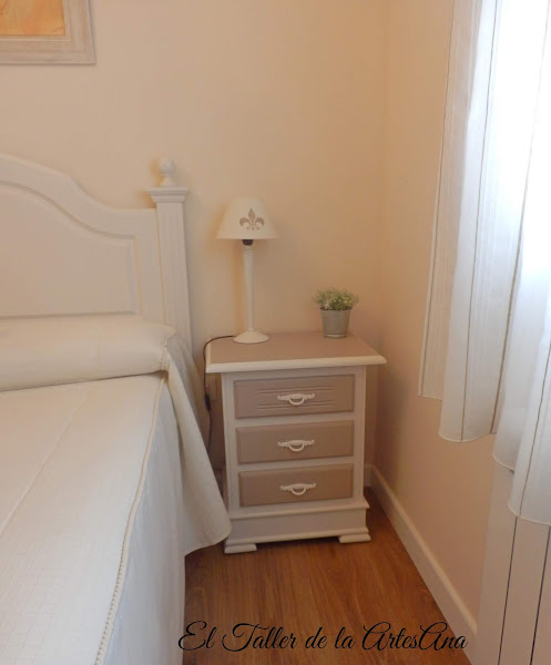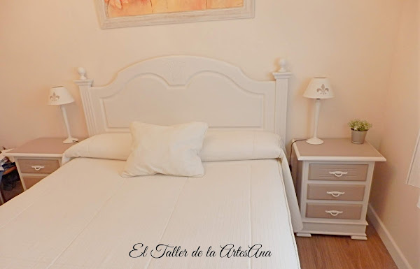 Hoy os quiero enseñar el espectacular cambio que dimos a la habitación de nuestra clienta Mª Ángeles. Ella tenía una habitación de matrimonio de tipo provenzal muy común y como los muebles estaban en buen estado le daba pena deshacerse de ellos y comprar otros que fueran mejor con el estilo que quería. Se puso en contacto con nosotros y vimos que podrían quedar preciosos combinando dos colores, como casi siempre de la carta de colores de Mary Paint. Es un esmalte acrílico de primera calidad. Al final nos decantamos por el blanco Piedra Natural y el Visón. Es increíble lo bien que queda esta combinación de colores y como dulcifica los muebles. También cambiamos los tiradores pintándolos también del Piedra Natural.