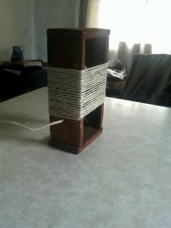 Para cubrir la lámpara usé hilo sisal y lo pegué con cola fría.