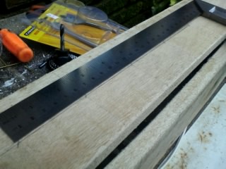 Para que tuviera un aspecto diferente y bonito marqué en ambas caras una línea recta y sobre ella, los puntos donde hacer unas perforaciones...