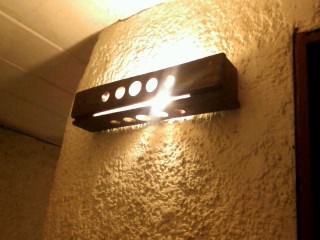 Para completar el trabajo mi esposo colocó un portalámparas en la parte de atrás y un par de anclajes en escuadra para sujetarlo a la pared.