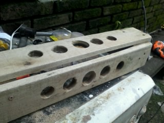 ...que permitieran el paso de la luz y decoraran el aplique. Las hice con mechas copa de diferentes diámetros.
