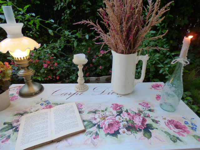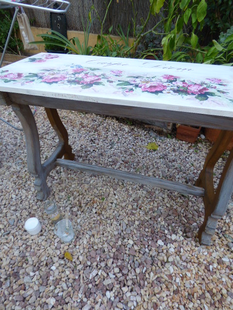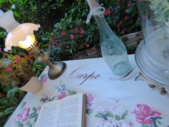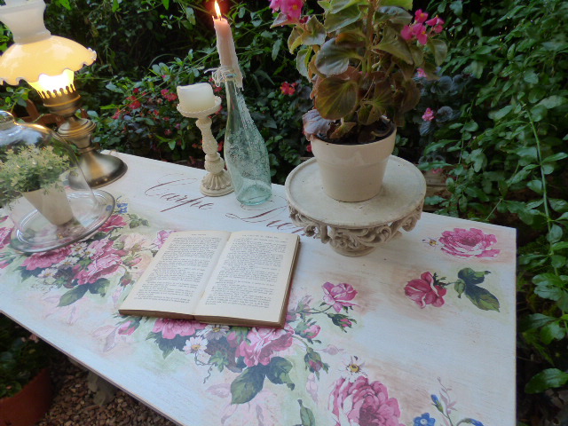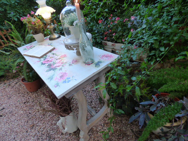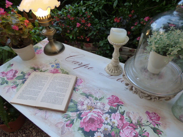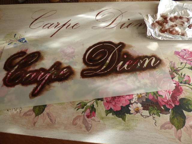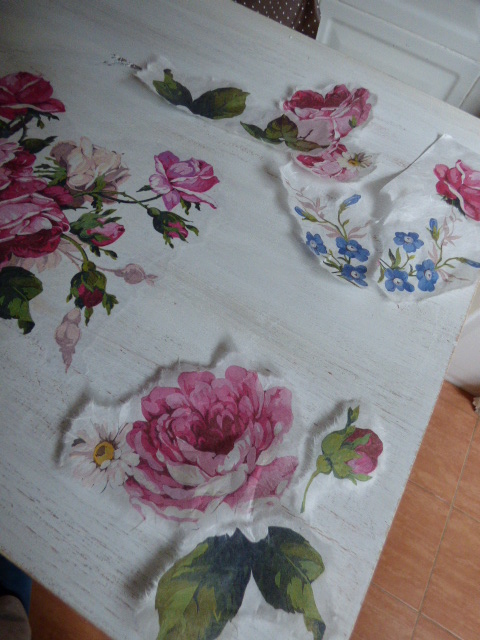 Después de darle Chalky blanca y lijar mucho por los cantos, venía lo más agradable....decorarla....