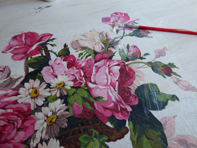 Una vez hecho el decoupage he dado barniz ultra-mate para proteger aún más el decoupage