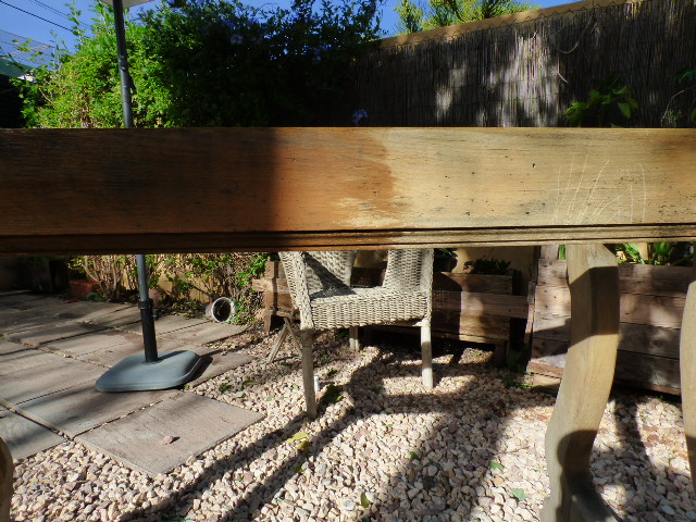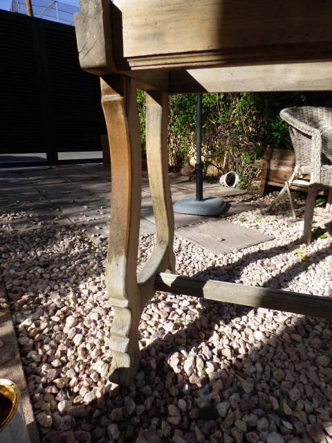 Hace apenas 2 meses yendo un día cualquiera a ver a mis papis, pasé por la calle de siempre y allá a lo lejos, ví un mueble. Como siempre también, me empezó a latir más fuerte el corazón (no es exageración jaja me pasa siempre) llegué alli y ví una mesa hecha polvo.....reseca, con el tablero cochambroso y sin bisagras, con pinta de haber estado a la intemperie muchisimo tiempo....en fin...un poema de mesa, pero aún así, pensé que las patas eran muy bonitas, así que fuí a dejar el coche y volví andando a por ella.
