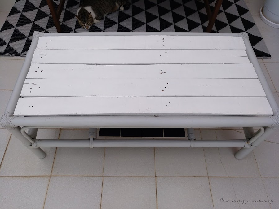 Aunque la mesa me habría gustado encontrarla sin pintar, porque por lo visto era de mimbre, de momento si aguanta todo el verano, yo feliz.