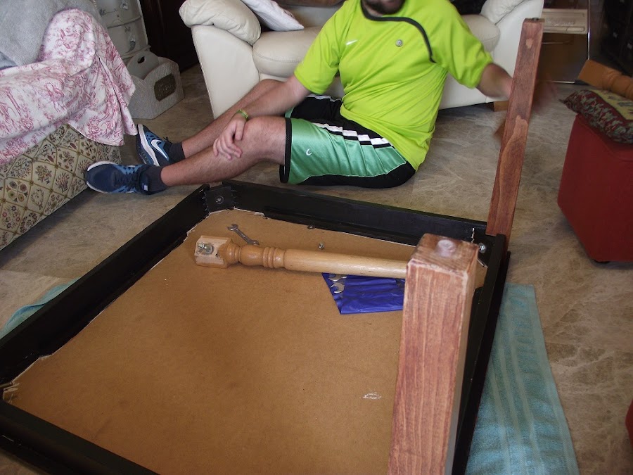 Dos veces al año, a principios de verano y de invierno, mi hijo se encarga de cambiar las patas para adaptar la mesa al clima. Aunque sólo son dos veces, él refunfuña diciendo que estamos "todo el día" cambiando patas de mesa jaja.