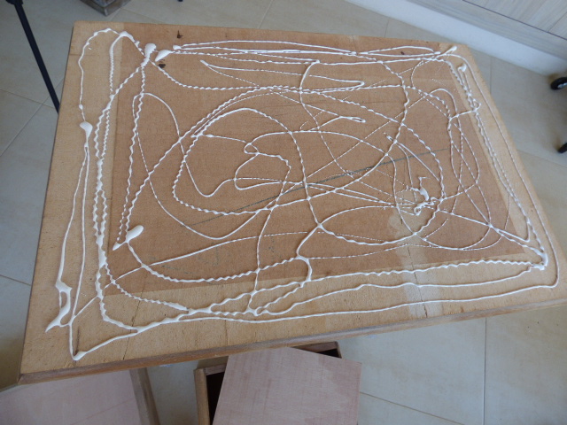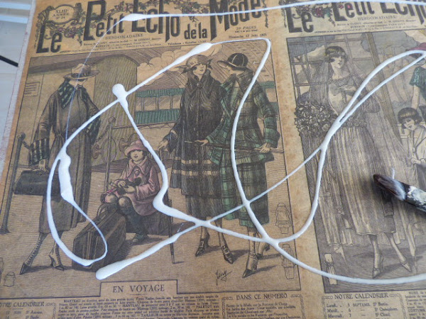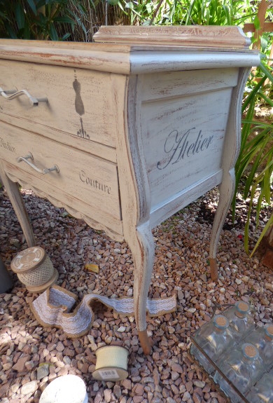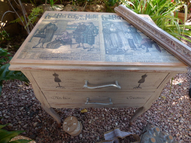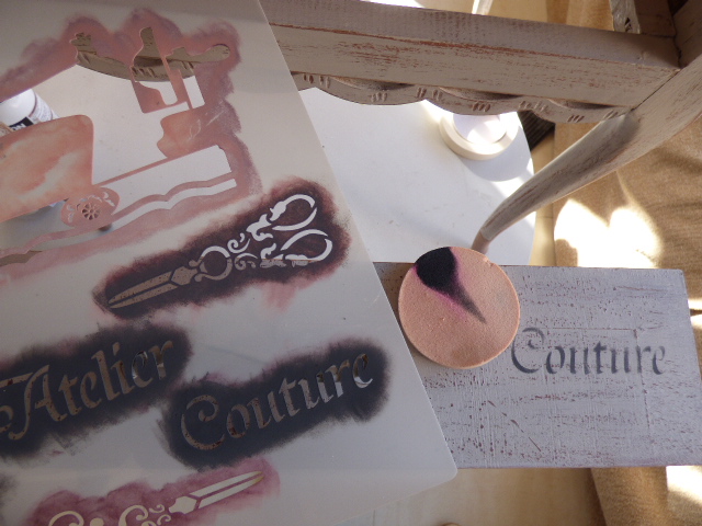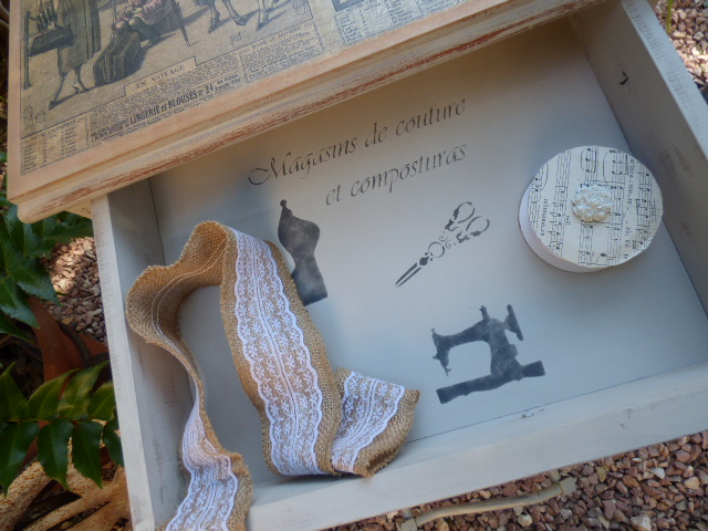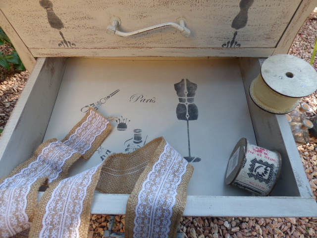 Los mismos pasos en los cajones y estarcidos con plantillas de costura