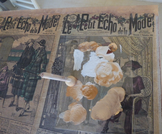 Una vez pegado, integrar bordes con un mezcladillo de tonos ocres y anaranjados
