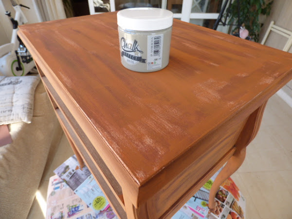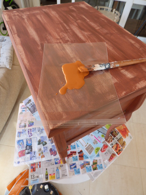 Que el tono de fondo fué el avellana de Chalk effect y una acrilica tono naranja óxido...la que veis en la foto, a brochazos sin pintar del todo la chapa.