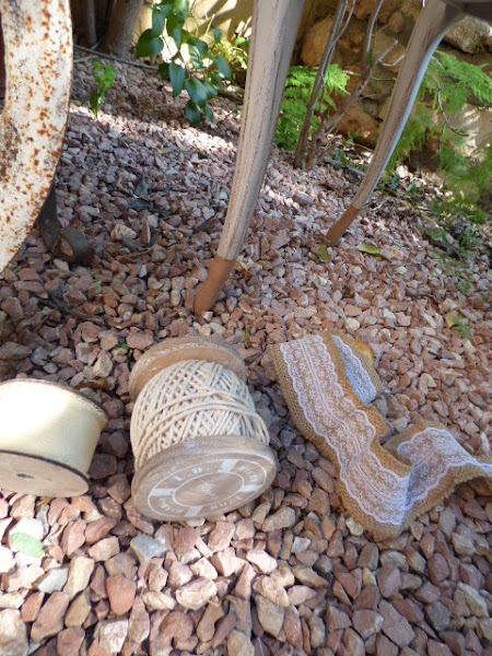 Sobre la gravilla no se distinguen demasiado, pero sobre un suelo normal de casa sí....y equilibra un poco visualmente los tonos marrones y ocres de la parte superior de la mesita.