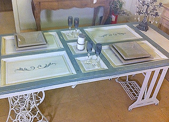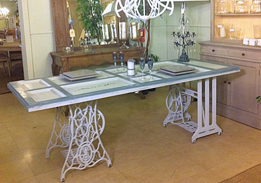 Como patas utilizamos dos viejas patas de máquinas de coser las cuales pintamos de un tono claro.