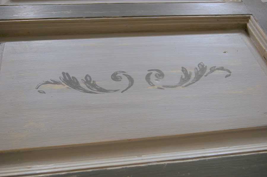 Cuando ya la teníamos así pintada pensamos que habría que darle un toque especial, para ello pensé que podríamos hacer un estarcido. Para eso invité a mi amiga Marta, conocida bloger por su archivamos blog "Piratas de Ikea".
