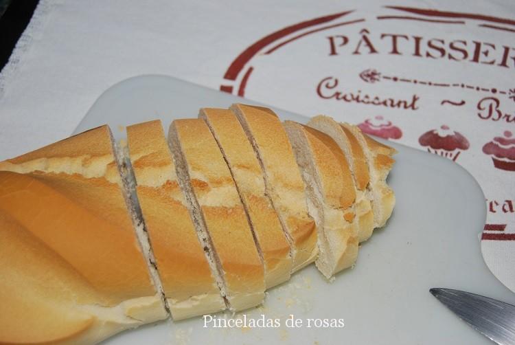 Mientras se va enfriando la leche, vamos cortando el pan las rebanadas de dos centímetros más o menos.
