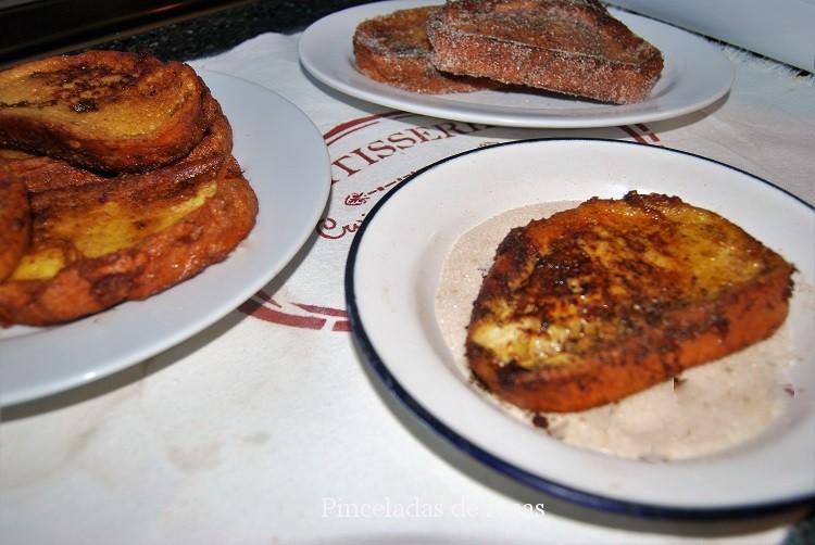 Consiste en una rebanada de pan (mejor de varios días) que se empapa en leche o vino con miel, con especias y tras ser rebozada en huevo se fríen en una sartén con aceite. Se aromatiza a gusto con diversos ingredientes: canela, anís o algún licor, se endulza con miel, almíbar o azúcar.
