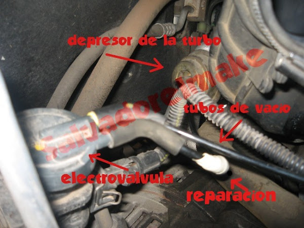 El segundo elemento son los tubos de vacío que comunican las electroválvulas entre sí y la EGR. estos tubos son de plástico y van montados a presión (son la causa mas frecuente de averías en el sistema), debemos tener cuidado para no cambiar ninguno de sitio, se puede desmontar uno se comprueba que no esta picado y se vuelve a montar, así hasta tenerlos todos comprobados (en mi caso uno de los tubos estaba picado así que lo reparé con cinta aislante hasta que pude comprar uno nuevo y funcionando perfectamente).