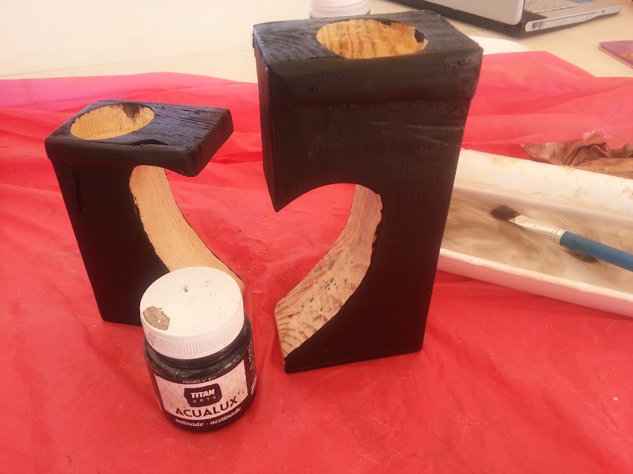Como se ve en la foto al pintar el rosa me cubría la base negra, y como ya explique tengo que agradecer a Amparo y otras amigas artesanas!