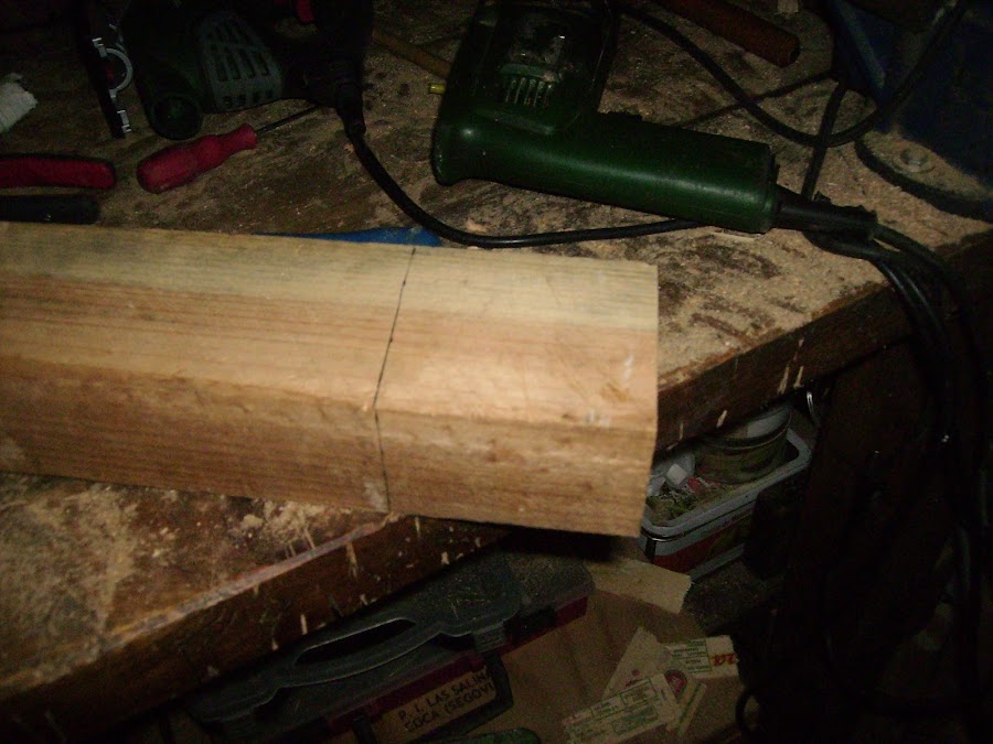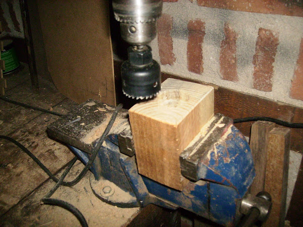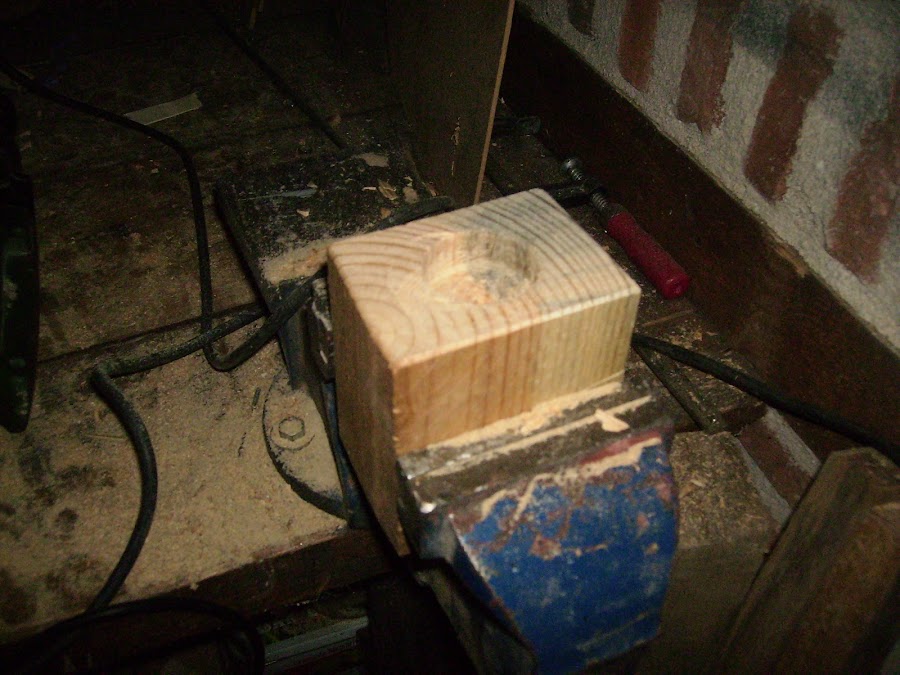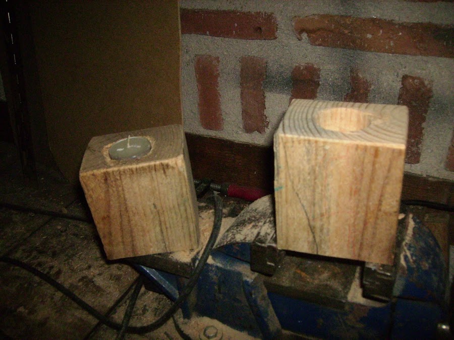Lo ideal sería hacer el agujero con una broca de pala del diametro de la vela. Pero me tengo que apañar con lo que tengo.