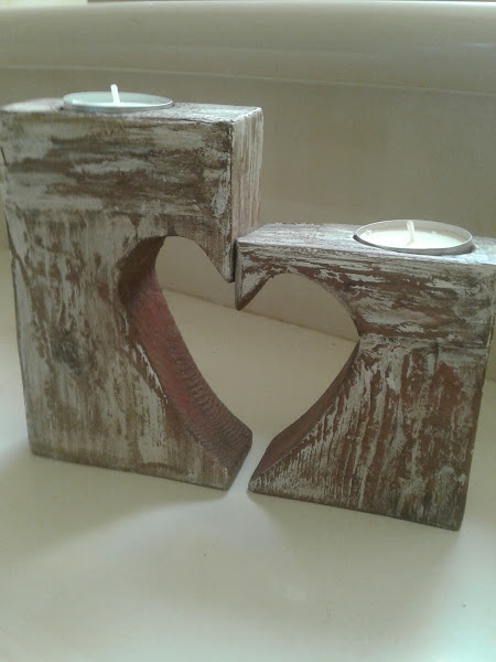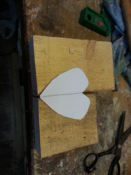 Hago una plantilla de corazón y lo pongo sobre las maderas que serán los soportes de las velas corazón, para marcarlo