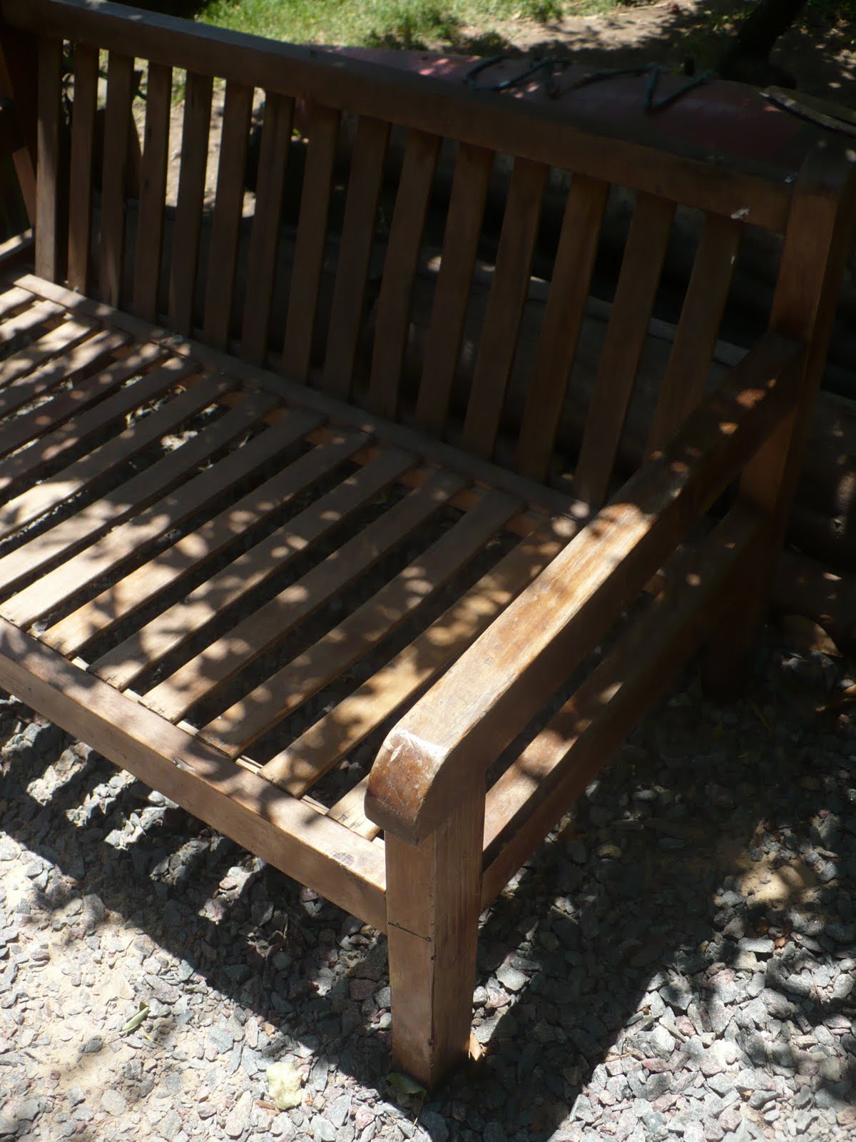 Aquí vemos el antes del sillón, desgastado por la exposición a la interperie, el sol, las lluvias y mis perros.