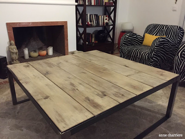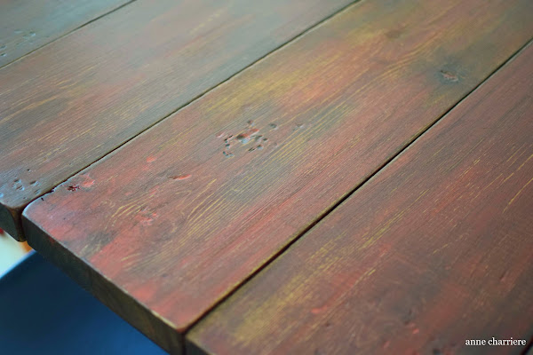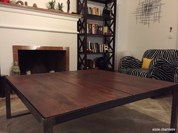 He teñido las vigas con betún de Judea y luego he utilizado la pintura de tiza y la cera oscura para dar este aspecto envejecido. No saqué muchas fotos para este trabajo pero, considerando lo nuevas que venían las vigas, el resultado final se aprecia bastante... Con este trabajo, participo en los frugales de Marcela.
