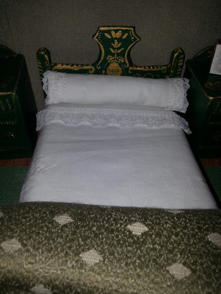 La cama al igual que la mesilla y el armario son compradas. Las sábanas, colcha y almohada me las hicieron, pues yo no se coser.