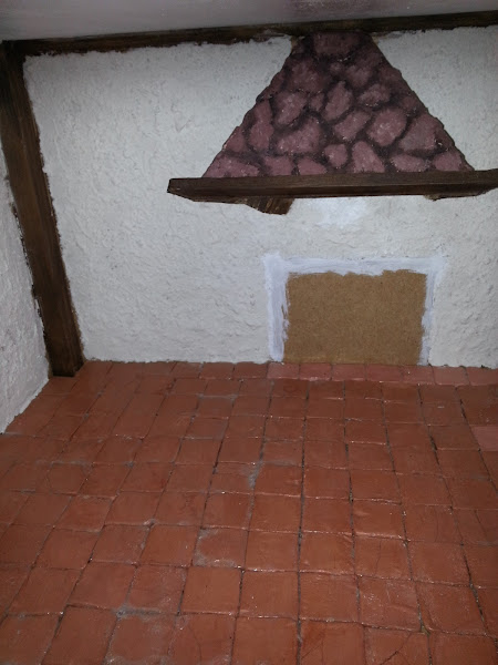 Para las paredes utilizo una pasta a base de Aguaplas, cola de carpintero y arena. Después que esto seca las pinto de blanco.