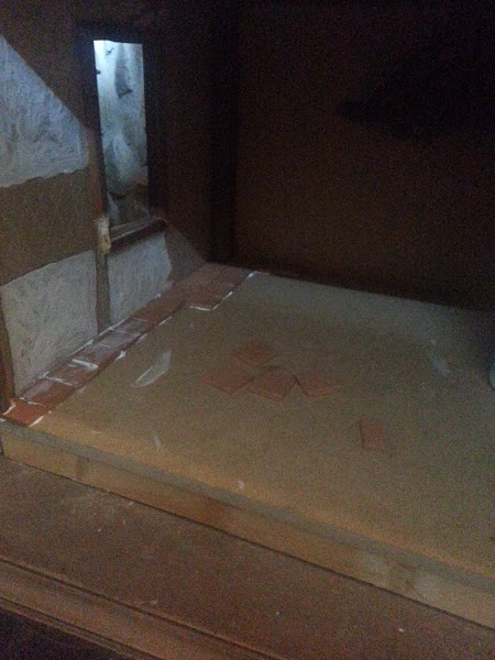El suelo de la cocina lo hago con arcilla, una a una voy modelando las baldosas.