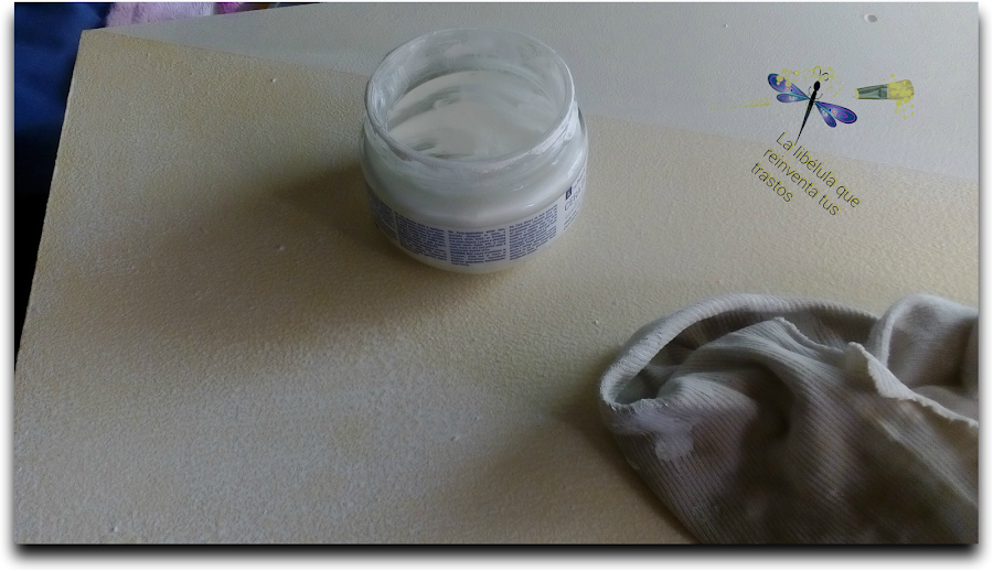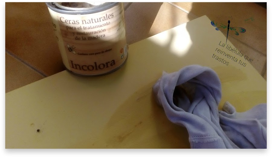 Mezclé el mostaza de chalk paint con pintura blanca, para obtener así el tercer tono antes de llegar al blanco. Como no me convencía mucho el tono que adquiría, lo acabé de rebajar con cera blanca, y así si quedó como yo quería!